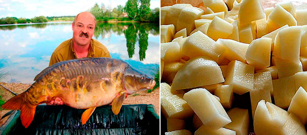 Самый простой и экономичный способ ловли карпа – это применение обычного картофеля в качестве наживки. Несмотря на свою доступность, этот метод требует серьезных подготовительных процессов, чтобы рыбалка оказалась результативной. Ловля карпа является одним из самых интересных и захватывающих видов рыбалки. Это связано с тем, что карп считается сильной рыбой и экземпляр, весом около 2 килограммов оказывает серьезное сопротивление при вываживании. Подобное обстоятельство и привлекает многих любителей «охоты» на карпа. СНАСТИ ДЛЯ ЛОВА КАРПА НА КАРТОШКУ Поскольку карп является достаточно пугливой и осторожной рыбой, то он не подходит близко к берегу. Поэтому, чтобы его поймать, следует производить дальние забросы с помощью фидерного удилища, длиной не менее 2,2 метра. Леску лучше взять плетеную, с запасом. Как правило, на шпулю наматывается не менее 100 м лески. Диаметр шнура выбирается с таким расчетом, чтобы он мог выдержать дальние забросы с тяжелой кормушкой. В качестве поводко