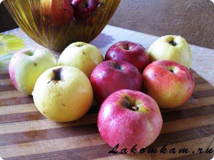 Ингредиенты: яблоки (у меня были двух сортов «Джонатан» и «Голден») – 8 штук; творог домашний – 150 грамм; сахар – 1 столовая ложка; сметана 20% — 1 столовая ложка; шоколад «Молочный» – пол плитки; карамель магазинная – 1 бутылочка.