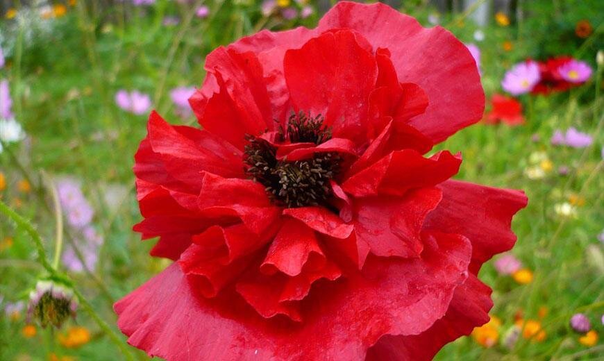 "Маки... маки.. маки... Горькая память земли." Красивая песня, берущие за душу слова. Только трудно согласиться, что такое нежный и изящный цветок, красный мак , навевает горечь. Можно даже сказать, что мак демонстрирует такую волю к жизни, что трудно найти другое такое растение. Кому приходилось на своем участке выращивать красные маки, хорошо об этом знают. Маковое зернышко такое маленькое, росток из него появляется тоже маленький и такой хрупкий! Если всходы оказались загущенными, а этого избежать не удается, то остается только проредить их . Можно попытаться рассадить, но растения очень плохо переносят пересадку, долго болеют и долго укореняются, отстают в росте и цветы получаются мелкие. После цветения наступает пора созреванием семян мака . Отследить на 100% процесс созревания не удается. Часть семян высыпается из созревших коробочек и в следующем году, весной они дают дружные всходы. И даже когда перестаешь сеять мак, еще долго то там , то тут появляются ростки.