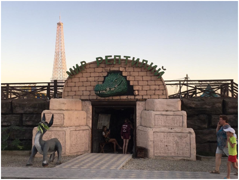 В прошлой статье я начала рассказ о станице Голубицкой. Сегодня поговорим о том, куда там можно пойти, что посмотреть и чем заняться. Станица вытянута вдоль побережья Азовского моря более чем на 7 километров. И здесь есть много развлечений и культурных мест, чтобы отдыхающие не скучали и с пользой проводили время. Начнем с Центрального пляжа. Здесь расположено знаменитое Голубицкое грязевое озеро. Оно отделено от моря узкой песчаной полосой. Многие приезжают сюда для того, чтобы принимать грязевые ванны. Правда, грязь добывать приходится самим, ныряя за ней на дно. На площади перед пляжем находится не менее известная крокодиловая ферма. Целый день по станице катаются машины, приглашая посетить это достаточно интересное место. Кроме просмотра крокодилов еще можно поучаствовать в их кормлении. А маленьких крокодильчиков даже дают подержать в руках. Рядом расположен вулкан экстрима. Там обитают экзотические птицы, змеи, ящерицы. Очень интересно, особенно детям. А вот ферма бабочек