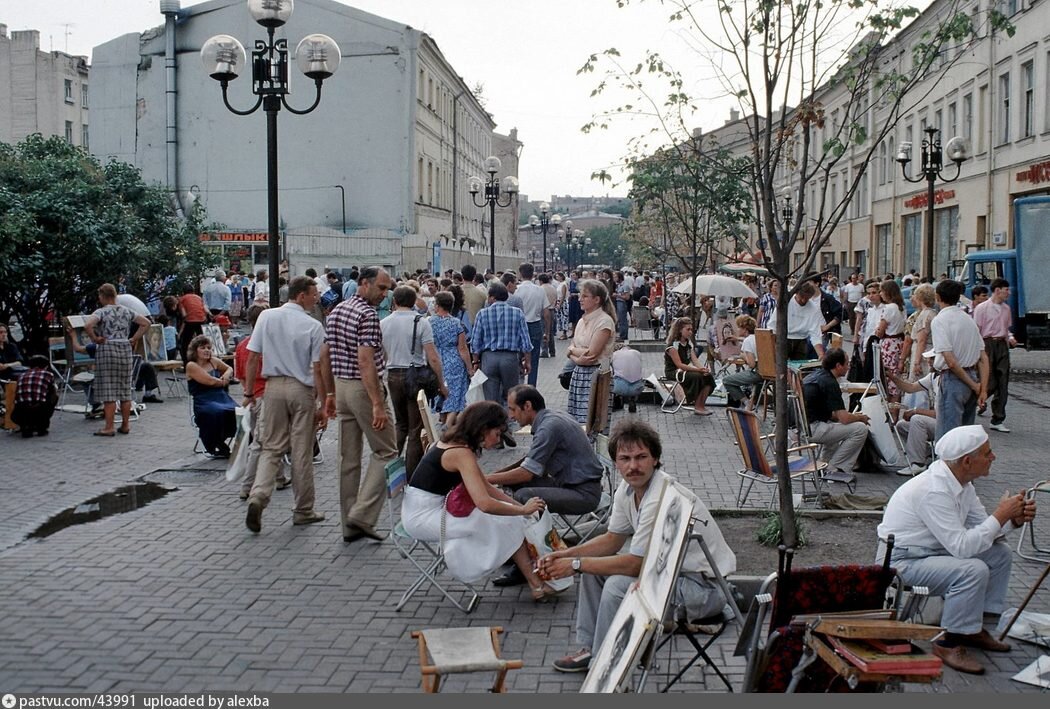 Как только о новшествах на Арбата стало известно в стране, количество желающих увидеть эту улицу своими глазами стало заметно увеличиваться. Заходя на Арбат, называемый теперь иногда в простонародье Старым Арбатом (для отличия от переименованного в Новый Арбат Калининского проспекта ) со стороны одноимённых станций метро, люди в то время видели ресторан Прага ( с правой стороны ) и обширную зелёную поляну с забегаловкой — с левой. А прямо перед ними — живописное зрелище из художников, окружающих их друзей, заказчиков и просто любопытных. Иногда художники и их компании были с дымящимся самоваром, философствовали, пили чай, а бывало одним только чаем не обходилось.