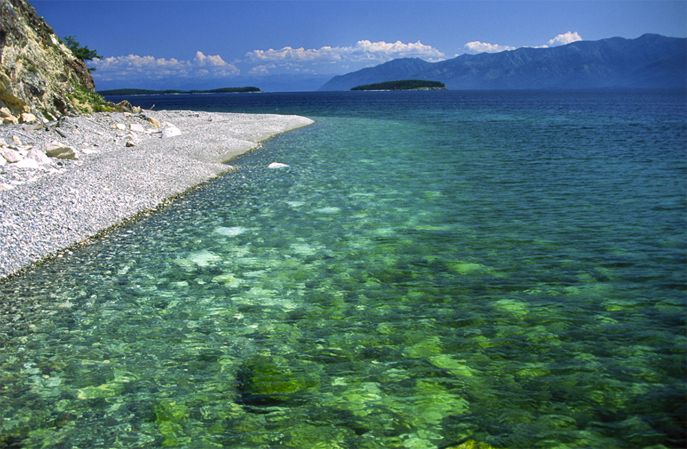 Самым глубоким озером в мире, является Байкал. Озеро расположено в южной части Восточной Сибири, крупнейший природный резервуар пресной воды и самое большое пресноводное озеро по площади на континенте! Озеро отличается разнообразной флорой и фауной. Местные жители прозвали Байкал - морем. Протяженность озера с юга на север - 636 км, ширина до 80 км, площадь поверхности — 31,5 тыс. км², максимальная глубина озера 1637 м. Уровень воды в озере над уровнем моря регулируется работой Иркутской ГЭС и колеблется в диапазоне от 456 до 457 метров. Средняя глубина озера составляет 730 метров, объем воды в озере — более 23 тыс. км³, что составляет 22 % мировых запасов пресной воды. Байкал прозрачен как стекло, и белый диск диаметром 20 сантиметров просматривается на глубине более 50 метров! Триста рек впадает в самое глубокое озеро на Земле, и только одна вытекает – величавая Ангара. Горные хребты окаймили котловину, в которой расположился Байкал. Приморский и Байкальский обступают его северо-за
