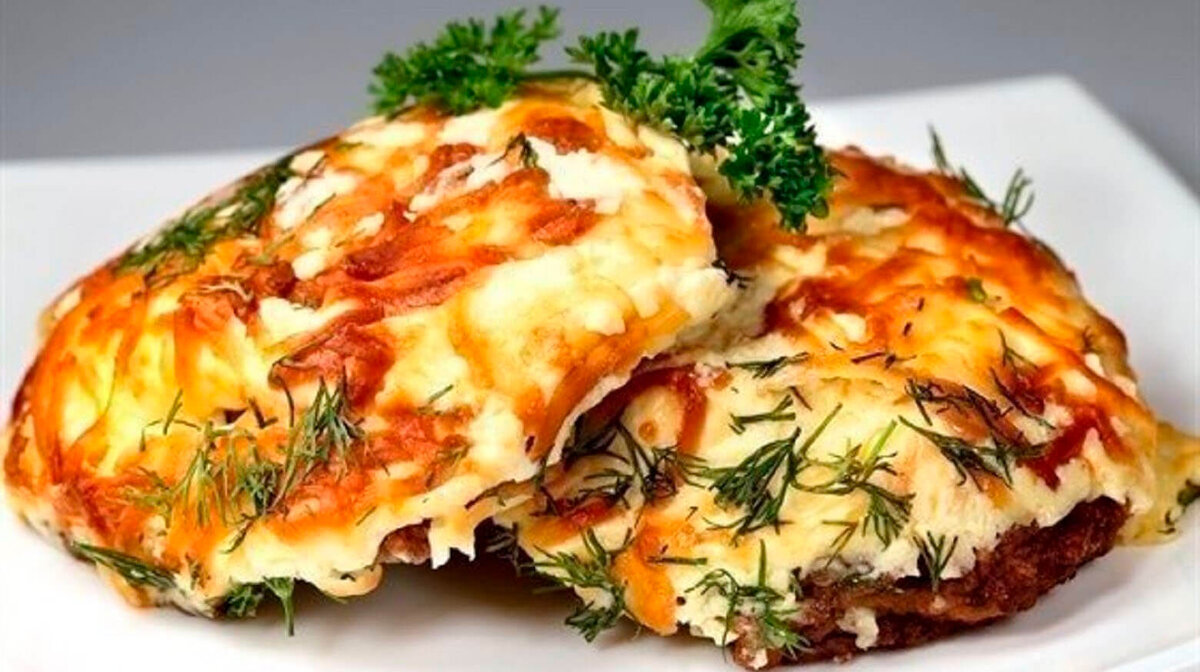 Ингредиенты: Мясо по-царски в духовке – рецепт Приготовление мяса по-царски начинается с подготовки всех ингредиентов . Чаще всего я использую свиную шею, но еще вкусно получится из свиной вырезки (например бедро). Мясо режем на равные пластины , как на картинке. Стейки нарезанного мяса я солю, перчу и обжариваю на раскаленной сковородке, не доводя до готовности. затем мясо снимаю с огня и выкладываю на противень, застеленный бумагой для выпечки и смазанной маслом. Мяско я сверху промазываю майонезом. Лук и укроп я измельчаю . Лук даст сок , а нежный укропчик придаст аромат. соединяем вместе укроп и лук и обильно посыпаем сверху наше обжаренное мяско, намазанное майонезом. Моем и режем грибочки пластинками. Посыпаем ими наш лук и укроп, затем берем помидорчики, режем их полукольцами и выкладываем их на грибочки. А для получения золотистой корочки щедро посыпаем каждый кусочек свинины тертым сыром. Духовку нагреваем до 190С. Ставим противень с мясом на среднюю полку. Запека
