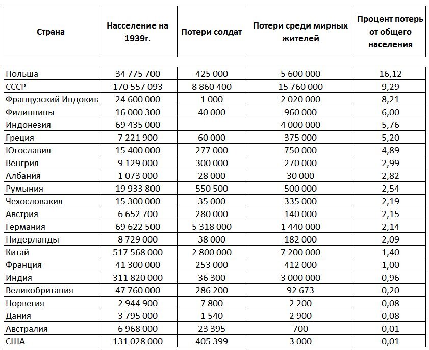 Например Украина потеряла более 10 миллионов. Вычтем из них боевые потери включая партизан, погибших при бомбёжках, умерших по естественным причинам и оставшихся в местах эвакуации. Где ещё почти 4 миллиона? А они убиты в ярах подобны бабьему (которых на Украине сотни), в сожженных сёлах и концлагерях чем занимались в основном коллаборационисты, погибли на принудительных работах в Германии.