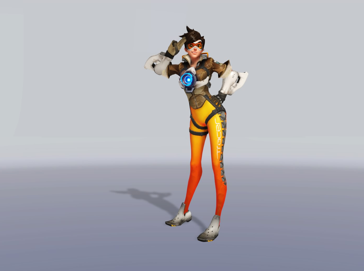 Итак, у Трейсер самое маленькое количество здоровья из всех, а также она любительница случайных смертей, но все это перекрывает ее ловкость во время боя. У нее имеется способность «скачок», которая позволяет мгновенно перемещаться на некоторое расстояние, всего у способности 3 заряда. А вместе со "скачками" имеется возможность возврата времени, перемещаясь с её помощью на место, где она была несколько секунд назад, возвращая при этом свой прежний уровень здоровья. Суперспособность «импульсная бомба» тяжеловата в освоении, т.к. ей не стоит разбрасываться направо и налево, а следует выждать наиболее выгодный момент для использования, а также ей можно убить себя. Чтобы привыкнуть к скачкам и возврату, из-за которых многие новенькие и даже более опытные не редко попадают в обрыв, уйдет время. Еще необходимо обладать весьма неплохим аимом.