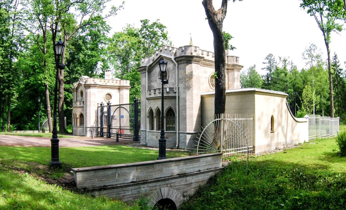 Ещё в 1823-1824 годах придворный архитектор Адам МЕНЕЛАС поставил у Столбовой дороги в Александровском парке "Красносельские ворота", выполненные в готическом стиле
