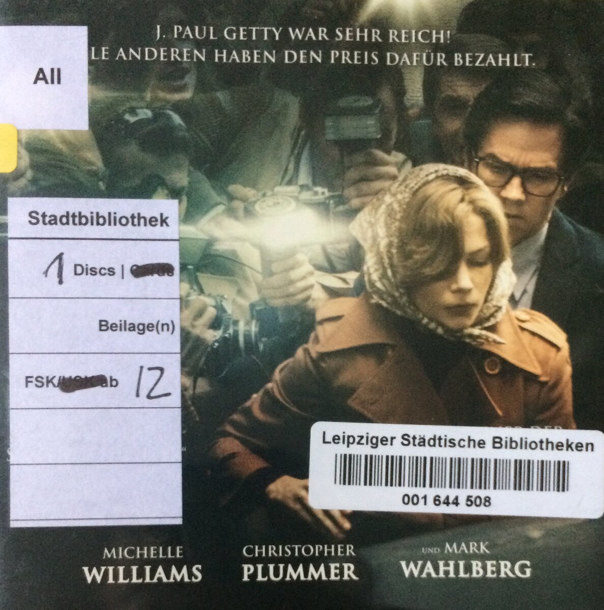Фильм от +12 Все деньги мира. Посмотрел на немецком языке. Фильм про 16-ти летнего парня отправившегося на прогулку в Италии. Внук одного нефтяного магната из Калифорнии. Поэтому парня похитили, не то коммунисты не то цыгане . Попросили выкуп 17 миллионов. Мать парня попросила дедушку миллиардера заплатить выкуп, но тот отказался на том основании, что у него ещё 14 внуков. Предостеречь их чтобы они остерегались бродить по ночам где попало. В общем он сказал что на всех денег не напасёшься. Фильм не плохой снят хорошо. Даже удивительно что создатели фильма запихали в него самые красивые виды архитектуры. Дедушка миллиардер ещё любил пошутить как подарить к примеру статуэтку матери парня сказав ей при этом что эта статуэтка антиквариат и стоит 1.5 миллиона, а потом выяснялось, что он купил ее за 10 долларов в туристическом магазине. Дед был очень жадный и коллекционировал древности. Парня потом освободили, но без уха, и без помощи деда. А дед через некоторое время умер, и его многоми