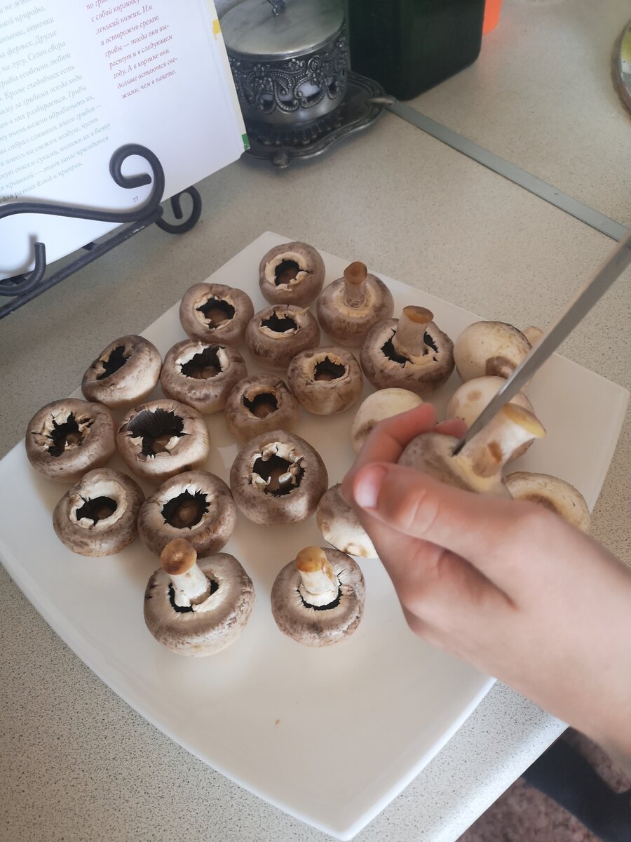 Наступила осень– лучшее время для сбора грибов. И именно по этому сегодня мы будем готовить фаршированные грибы. Для этого нам потребуется: 1. Вымойте грибы, протрите их бумажным полотенцем. Ножки осторожно выкрутите или вырежьте из шляпок и отложите. 2. Петрушку вымойте, воду стряхните, листики оторвите от стеблей. Чеснок почистите и мелко порубите вместе с ножками грибов и листьями петрушки. 3. Перемешайте всё с панировочными сухарями и тёртым сыром, посолите и поперчите. 4. Нагрейте духовку до 180 градусов. Шляпки грибов наполните приготовленной массой и положите в форму для запекания с высокими бортиками, смазанную оливковым маслом. Поставьте её на среднюю полку духовки и запекайте 15-20 мин. К фаршированным грибам хорошо подходит хлеб и зелёный салат! Не забывайте ставить лайки и подписываться на мой канал!