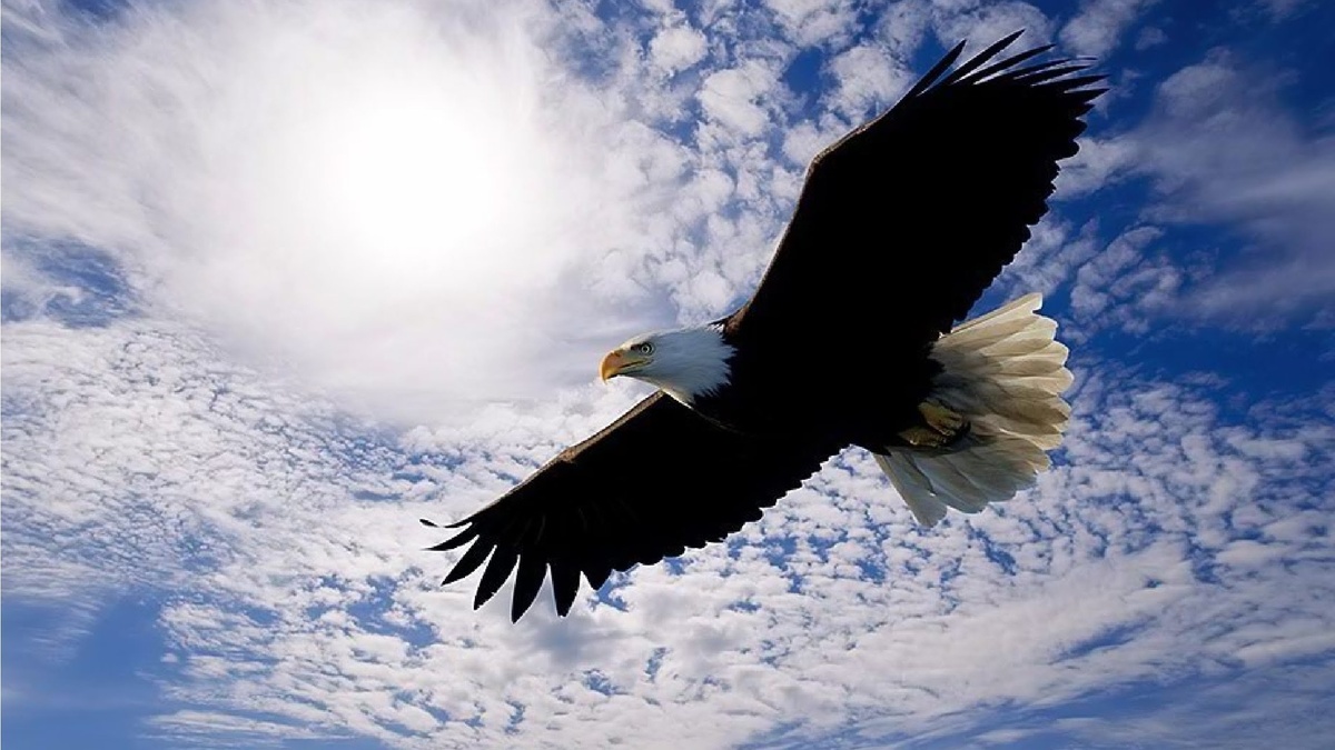 В небе завис орёл