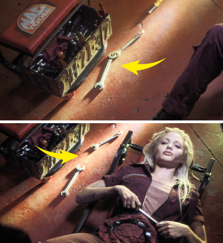 Съемочный процесс – это всегда трудоемкий процесс, который требует особой внимательности к деталям. Ошибки преследуют создателей кино постоянно, ведь за один день, порой, нужно отснять массу материала, а на некоторые сцены нужны десятки дублей. Именно из-за такой «нагрузки» и суматохи и происходят киноляпы, самые популярные из них вы увидите сегодня. Фильм «Угнать за 60 секунд» В кадре мы видим Анджелину Джоли занимающуюся ремонтом авто. Выкатываясь из-под машины, мы наблюдаем, что положение гаечных ключей поменялось, хотя она ими не пользовалась. Фильм «Дорога перемен» Наверное, один из самых популярных киноляпов, заключается он в том, что галстук главного героя Фрэнка, в течение одного рабочего дня, меняется несколько раз. Роль Френка исполнял ДиКаприо. Фильм «Отель Гранд Будапешет» Не очень значимый, но всё же ляп. Когда герой по имени Густав берёт визитку, то в кадре видно, что край слегка согнут. Уже в следующем кадре визитка появляется крупным планом, целой и без следов