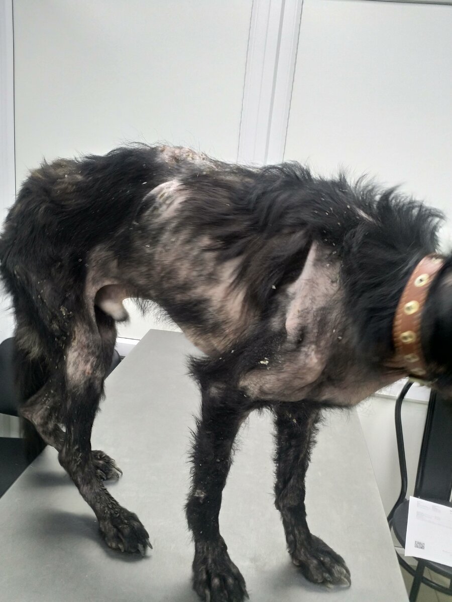 Дрогон, роскошный и добрый пес, его красота скрыта под коростами, проплешинами и худобой. Нашли собаку грибники, чисто случайно. Видок у Дрогона жуткий и чем-то он напоминает дракона, фото не передают того ужаса. Дрогона уже многие знают, весь ВК гремел от возмущения. Сотворить такое могли только недочеловеки с кучкой Г вместо мозгов. Сколько Дрогон просидел в лесу неизвестно и в каком он был состоянии, когда его привязали тоже неизвестно. Выглядит он на сегодняшний день вот так: Как только собрались какие-то средства, пса сразу же вывезли в клинику г.Перми, ул.Г.Хасана, 7а, где его осмотрел дерматолог, взяли кучу анализов. Неизвестно, что он мог подцепить в лесу, исключили только демодекоз. Ростом он с овчарку, а то и побольше, весит ВСЕГО 15КГ! При его то размерах такой вес, как он в живых остался не понятно. У нас Барбоскин 20кг, хотя Барбоскин в два раза меньше Дрогона. Дрогон не мог идти, его из леса несли до машины и в дом тоже заносили на руках. Первый день его откармливали и