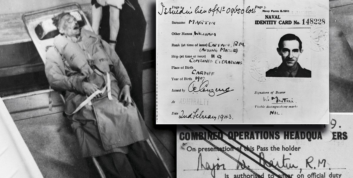 Зимой 1943-ого года на улицах Лондона был обнаружен очередной труп бездомного. В это время британская разведка готовила сложную операцию по передаче ложных сведений в штаб Гитлера. Этот покойник пришёлся им как нельзя кстати. Следовало убедить немцев в том, что союзники готовят высадку в Грецию. Операция «Мясной фарш» была начата. В течение трёх месяцев британская разведка хранила труп в морге, пока готовилась правдивая легенда. В итоге, в мир вышел капитан Мартин, который получил официальные документы, письма от вымышленной невесты и различную бытовую мелочёвку. К руке погибшего прикрепили несгораемый чемодан с секретными документами. По планам, изложенным в документах, становилось очевидно, что союзники выбрали в качестве плацдарма для вторжения в Европу Грецию. Тогда как наилучшим вариантом была Сицилия, и немцы это тоже понимали. Апрельским утром тело неудачливого «капитана» было выловлено местным рыбаком из воды По всем фактам было очевидно, что разведчик погиб в результате кру
