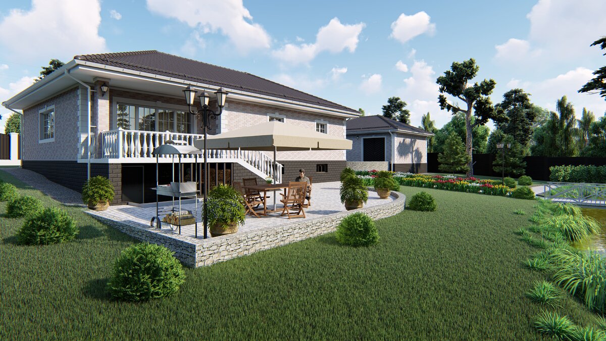 Скромный, светлый и современный одноэтажный дом с подвалом.