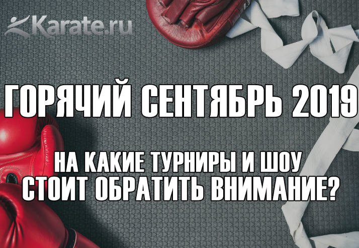 Сентябрь обязан радовать фанатов единоборств большими событиями. Мы с нетерпением ждем новые турниры и надеемся, что градус интереса к нашим материалам будет неустанно расти. Рассказываем об ивэнтах и шоу, которые попадут в центр внимания портала! MMA: 4 турнира UFC и 4 турнира Bellator Бокс: Три значимых поединка Дзюдо: Гран-при Ташкента и Чемпионат мира среди кадетов Борьба: Чемпионат мира по греко-римской, вольной и женской борьбе Самбо: Чемпионат Азии и Кубок Европы Каратэ: 3 турнира под эгидой Karate1 Кикбоксинг: 2 турнира Конечно, это не все турниры и события сентября, мы лишь акцентировали внимание на самых интересных. Будет жарко! Следите за новостями из мира единоборств вместе с порталом Karate.ru!
