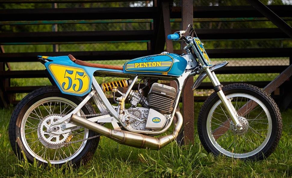 Нередко мы встречаемся с Penton, и очень часто эти мотоциклы подвергаются тюнингу. Но когда мы увидели этот сильно переработанный Mint 400 на шоу Mama Tried в начале этого года, нам захотелось узнать о нем больше (тем более, надпись на топливном баке выглядела так, словно это настоящая подпись Джона Пентона.) Chi-Jers Vintage Bike Works Нам очень помогло то, что владелец и строитель этого Penton, ПиДжей Grakauskas из Chi-Jers Vintage Bike Works, является одним из самых дружелюбных и интересных парней, с которыми нам когда-либо приходилось встречаться. И, как оказалось, его любовь к винтажным гоночным мотоциклам производства KTM уходит корнями в прошлое… История Джона Пентона и мотоциклов Penton начинается в Амхерсте, штат Огайо, это и мой родной город - рассказывает нам ПиДжей. Мой отец - признанный мастер по мотоциклам Penton в Штатах. Его восстановленные и модифицированные двигатели установлены на некоторых самых быстрых мотоциклах Penton. Коллекция старых деталей Penton в нашем са