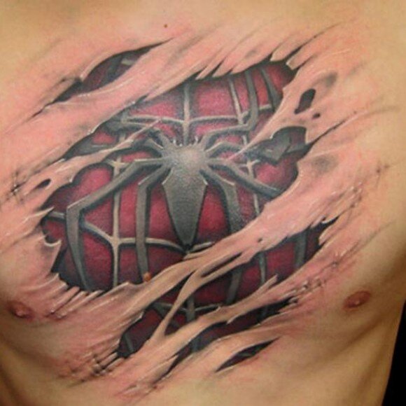 Настоящий фанат своего любимого героя "Человека Паука" сделал вот такую татуировку себе на грудь. 2.Оптическая Иллюзия