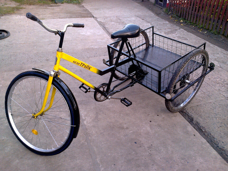 Было решено сделать тёще велосипед из найденного в дворе тещи вело хлама. 8 дней после работы и получился такой вот аппарат для села, транспортировка огорода, пришёлся вместо привычного возка. Роздатку по звёздочкам — примерно угадал, кому надо могу посчитать, ехать очень легко даже с 4 мешками картошки. Привод на заднее колесо. Запись пользователя 1391Octavia из сообщества Сделай Сам на DRIVE2