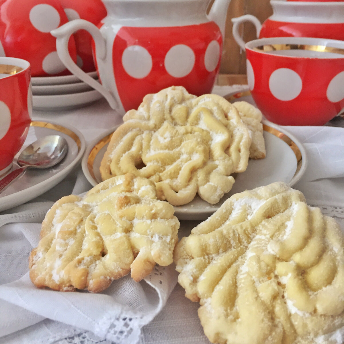 Печенье «хризантема» или проще говоря «печенье через мясорубку» самое простое и самое распространённое печенье советских хозяюшек. Хотя, то что оно так было популярно в советское время, сейчас вызывает у меня смутные сомнения. Дело в том, что у моей мамы это было «коронное» печенье, которое никогда не выводилось из дома. Заканчивалась одна партия, мама пекла другую. Любила она это печенье за то, что с ним совершенно не было возни. Утром, быстро-быстро замесил тесто, завернул его в пакет и оставил до обеда. В обед шмык-шмык, пропустил через мясорубку (у нас всегда была электрическая мясорубка) и все, в течении часа гора печенья была готова, а мама была абсолютно свободна. Особенно классно было на школьные праздники, мама пекла его много, все этим печеньем восхищались, а в подтверждение своим словам съедали его первым. Были некоторые мамочки, которые подходили и спрашивали рецепт, а были странные женщины, которые в порыве восхищения расхваливали мамино терпение накрутить и выложить оди