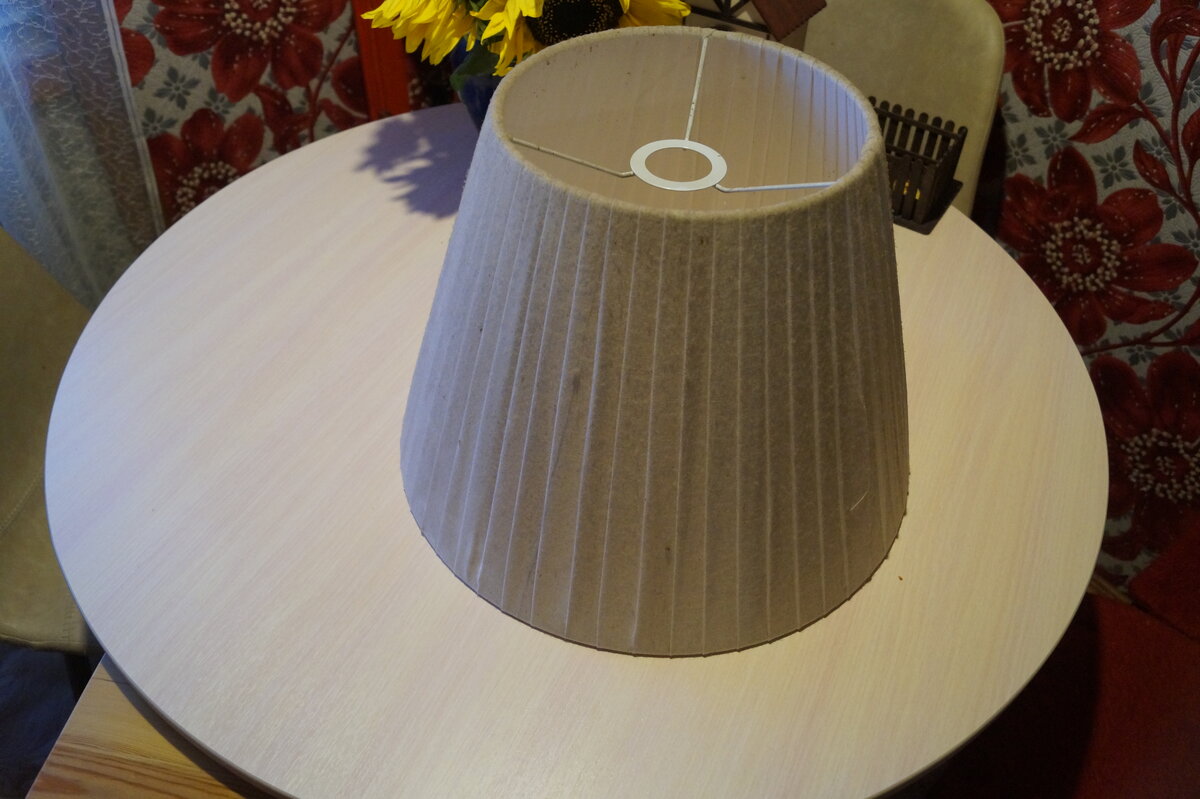 У нас над кухонным столом как и полагается висит светильник, обычный подвесной, тканевый, бежевый (в прошлом:)) ). В очередной раз взглянув на него, сердце не выдержало, и я приняла волевое решение привести его в приличный вид сегодня, и не днем позже.