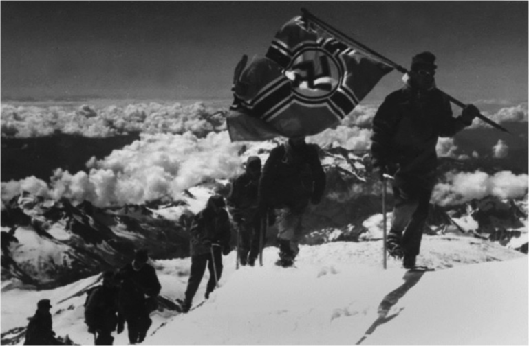 Позже, уже в феврале 1943 –его, два отряда советских альпинистов под руководством Николая Гусака и Александра Гусева получили приказ сбросить немецкие знамёна с вершин Эльбруса и установить советские. Тем самым показав всему миру, что Кавказ полностью очищен от гитлеровцев. Февраль – самый суровый месяц на Эльбрусе, к тому же все подступы к вершине были заминированы. Но это не помешало нашим альпинистам совершить восхождение и сняв немецкие штандарты, водрузить на вершине этой горы флаги Советского Союза.