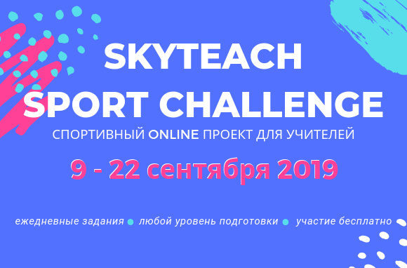 И снова сентябрь. У преподавателей началась проверка тетрадей, отчеты, программы и планы уроков. Присоединяйтесь и заряжайтесь энергией для нового учебного года! С 9 по 22 сентября мы проводим Skyteach Sport Challenge – спортивный онлайн-проект для учителей. Участие бесплатно. Просто и весело вы приобщитесь к здоровому образу жизни в компании коллег. Челлендж проходит в онлайне – у вас всегда найдется время для себя. Что это? Подробности и регистрация – на сайте! Вы с нами? Вместе создадим привычку к здоровой жизни!
