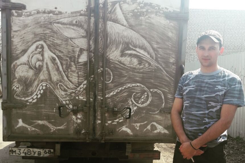 Фургон, грязь и тряпка. Всё, что нужно тамбовскому водителю, чтобы создавать необычные картины