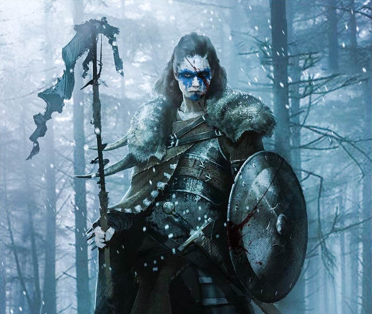 Высокая, красивая женщина, со свирепыми глазами, стоит на возвышенности сжимая в руках копьё перед 120 000 мужчин, женщин и детей, — так Кассий описывает Боудикку.