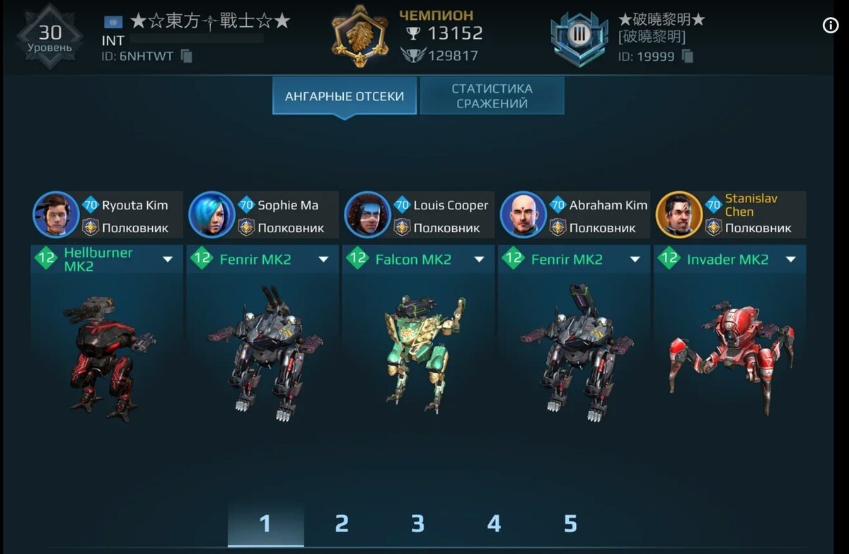 Это сейчас топ-1 в Легендарной Лиге на iOS. Не знаю откуда он — китаец, японец, кореец, может вообще вьетнамец. 4 танковых меха. Один раз в Против Всех я встретил игрока с 5 танками. 20 минут назад смотрел бой топовых кланов — Ares естественно много, но и Fenrir есть, Falcon c одним слотом бегает и Пауки прыгают. Наступит ли танковая эра? Вполне вероятно.