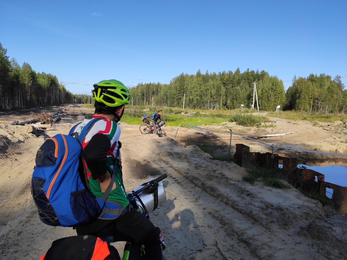 Все изменилось на грунтах, которые быстро превратились в песок: местами он был настолько сыпким, что приходилось идти пешком. Из-за узких колес, короткого вела и тяжелых баулов я тормозил всю группу. Впрочем, ребята уже привыкли — если я присоединился на пересеченке, значит будет частично пеший забег.