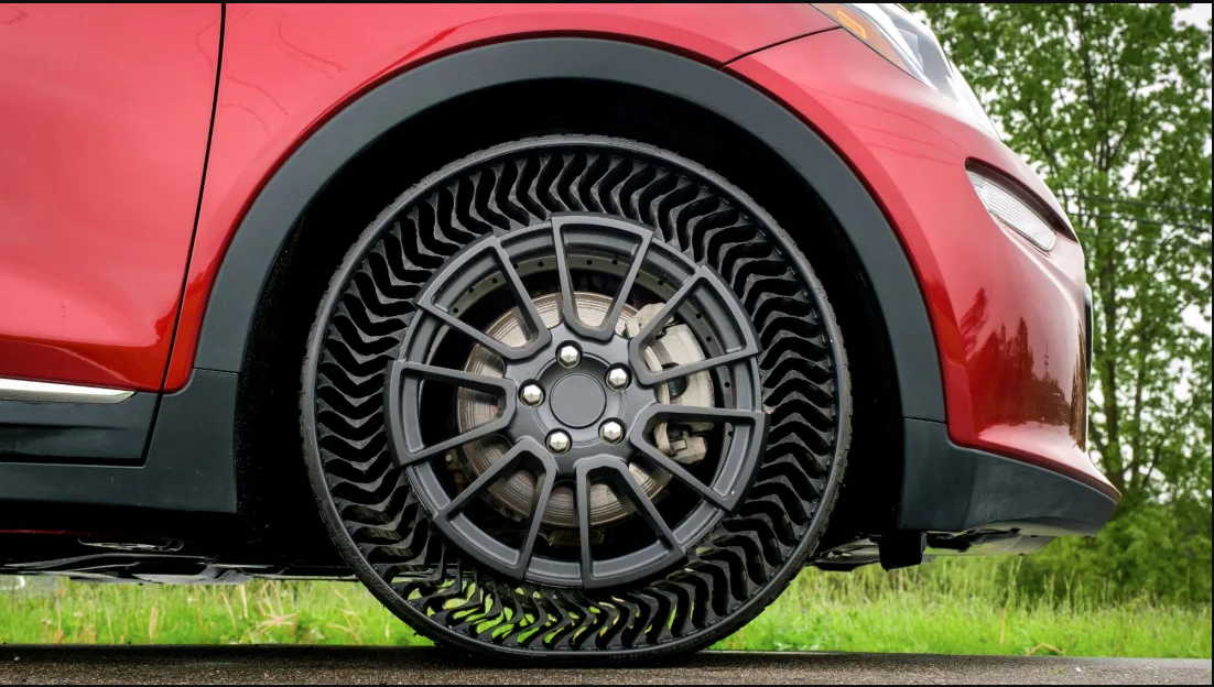 Как правило к прототипом и концептам разного рода мы относимся предвзято, и правильно делаем. К примеру бескамерные покрышки появились в качестве концепта давным-давно. Они вышли в продажу и пользуются устойчивым спросом. Однако компания Michelin пошла еще дальше в начале июня они показали безвоздушную покрышку для серийных автомобилей. В 2004 году в рамках парижского автосалона компании Michelin представила первые практичный Concept безвоздушного колеса. Шины Michelin tweel состояла из почти обычного металлического диска который крепился к ступице болта, внешний повод был выполнен из резины, а с металлическим диском он был связан с полиуретановыми спицами. По словам разработчиков компании Michelin их колёса дешевле обычных пневматических они не будут требовать практически никакого обслуживания в процессе эксплуатации, а сложить будут дольше поскольку не подвержены проколам. На легковых автомобилях их использование не планировалось так как они были испытаны и рекомендованы для т