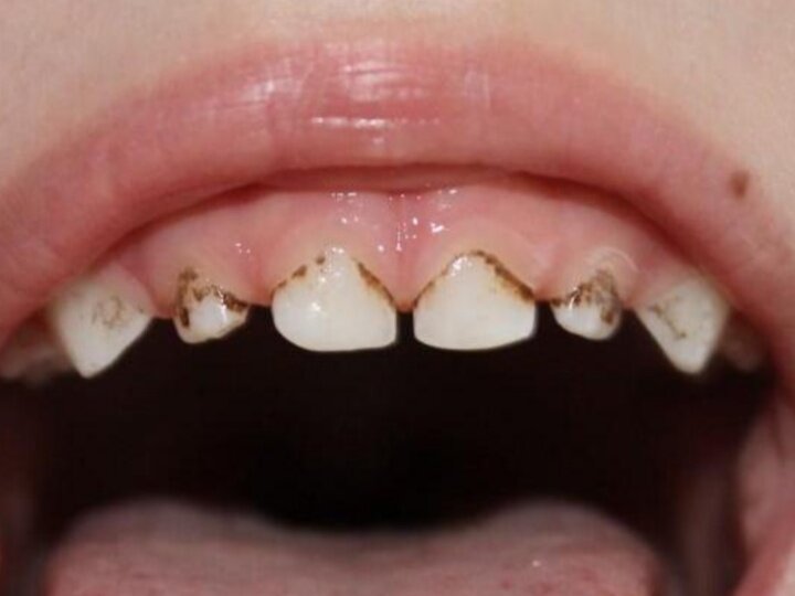 В последнее время часто слышу от молодых родителей,что у ребенка на молочных зубах есть небольшой чёрный налёт. Когда моему ребёнку исполнился год,я сама столкнулась с этой проблемой. Давайте же разберемся, что из себя представляет тёмный налет на молочных зубах. Возможные причины возникновения налёта: Начинать чистить зубы нужно,как только появились первые молочные зубы. У нас была такая ситуация,что ребенок не давал нормально почистить зубки и от этого был тёмный налет на зубах. Его то совсем не было,то снова появлялся. Также зависит от зубной пасты. От дешёвой зубной пасты налёта становилось гораздо больше. Сейчас нам почти четыре года и налёта нет где-то около года благодаря регулярной качественной гигиены полости рта) И не забывайте о профилактических мерах: -соблюдайте питьевой режим ребёнка,особенно в жару; -своевременно вводите в рацион твердую пищу(овощи,фрукты,сухари,сушки..); -ежедневная чистка зубов утром и вечером; -регулярное посещение детского врача-стоматолога; Чтобы
