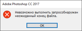 - Указать поврежденный. psd файл Photoshop