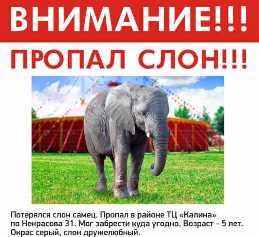 Сообщение о потерявшемся в Абакане слоне оказалось пранком