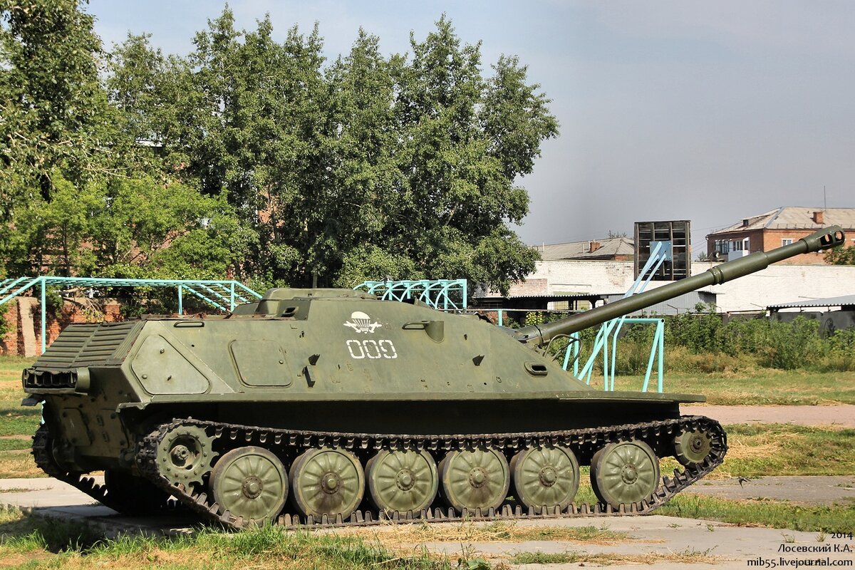 Что можно встретить на школьном дворе? Футбольное поле, прочие спортивные сооружения, хозяйственные постройки и различные зелёные насаждения. А вот во дворе одной из омских школ со всем вышеперечисленным соседствует ещё и авиадесантная самоходная установка АСУ-85. Впрочем, школа эта не простая, а кадетская, так что наличие там боевой машины - вполне в тему. АСУ-85 была разработана в КБ Мытищинского машиностроительного завода в первую очередь для обеспечения противотанковой обороны частей ВДВ, но также могла использоваться для сопровождения мотострелковых и танковых подразделений. Выпускалась она на ММЗ с 1959 по 1966 год. Причиной снятия её с производства явилось наличие у машины серьёзных недостатков, главными из которых были недостаточная огневая мощь 85-мм пушки 2А15 и невозможность десантирования парашютным способом (парашютно-десантная платформа П-16, способная обеспечить десантирование АСУ-85, была принята на вооружение только в 1972 году, а до этого самоходку можно было десанти