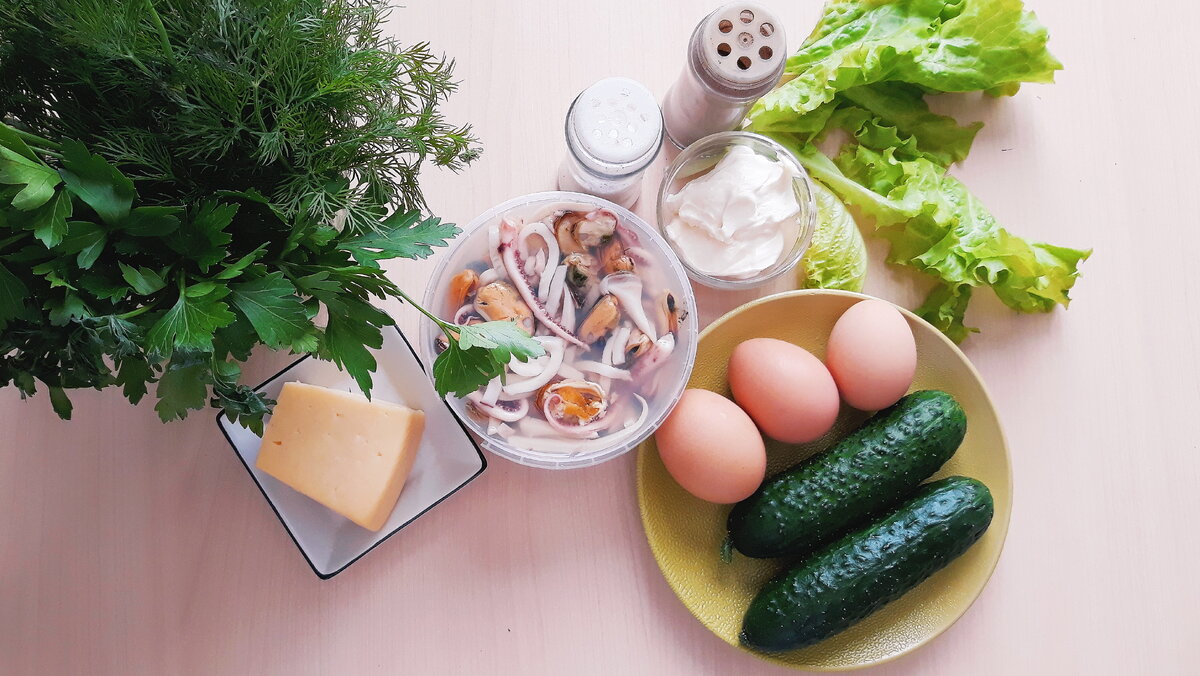 Салат с морским коктейлем, а именно с мидиями, креветками, кальмарами, осьминогами — типичное ресторанное блюдо европейской кухни. Но кто сказал, что такую вкуснятину нельзя приготовить дома? Делюсь своим самым простым и любимым рецептом. Ингредиенты На 4 порции салата потребуется: Приготовление Огурцы можно нарезать либо соломкой, либо кубиками, либо полукольцами. Перекладываем огурцы в глубокую емкость, добавляем к ним морепродукты, предварительно слив рассол (немного рассола оставляем). Натрите сыр на мелкой терке. Нарежьте яйца кубиками и также отправьте их в миску. Добавьте соль и перец по вкусу. Заправьте салат майонезом. Также можно добавить совсем немного рассола от морского коктейля. Осталось перемешать и подать к столу. Подписывайтесь на наш вкусный YouTube канал Priprava Club Оставляйте комментарии, ставьте пальчик вверх, нам важно ваше мнение. 😘 😘