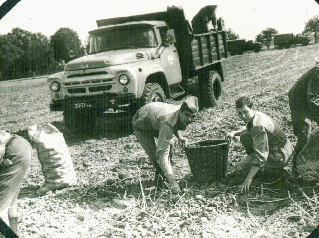1. Василий Бухаров из ГСВГ поделился своим опытом уборки картофеля на немецких полях: «Помню, ездили на уборку картофеля. Что запомнилось. Приехали, вышли в поле, приехал трактор распахал несколько соток, грядки длинные. Встали так - с одной стороны мы - руссиш зольдатен, с другой стороны - немецкие учащиеся. Корзинки. На каждой корзинке бирка 12.5 кг. Чтобы не надорваться, так думаю. Сразу вспомнилась деревня, лошать и мешки с картошкой. Грузили на трактор с пологом. Я залез на полог и принимал корзинки от ребят. Приехал на мотоцикле, по нашему будет - председатель колхоза, увидел меня с лычками, подозвал к себе, дал пачку сигарет Джувел, сказал на ломаном русском: «Ты не работаешь, ходишь, куришь и смотришь...» Надо полагать у них сержант на привилегированной ступени стоит, помочь коллективу это значит себя не уважать. Пачку раскурили быстро. Трава - травой. Одно но, у немецкого полога, было видно, стояла женщина, типа учетчица, и каждый раз что-то давала студентам, когда они принос