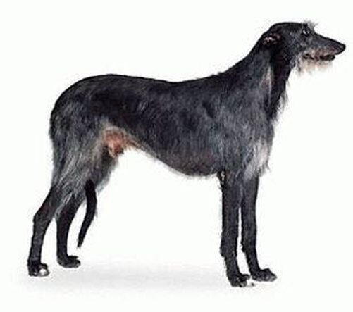 Эта охотничья борзая создана для травли животных и охоты на оленей без оружия. Эта категория лучше остальных приспособлена к тому, чтобы догнать зверя на местности и убить его. Средний рост кобеля от 76 сантиметров, а вес от 45 килограмм. Тело пса удлиненное с развитой мускулатурой. Его ноги длинные и стройные, небольшая вытянутая морда. Шерсть жесткая и настолько длинная, что свисает с тела. Распространенными есть окрасы серый, песочный и коричневый. Дирхаунд — одна из самых крупных и древнейших в мире. Она появилась в Шотландии еще в XVI веке. А спустя три столетия слава о дирхайнде облетела весь мир. Официальное признание было получено лишь в 1892 году.