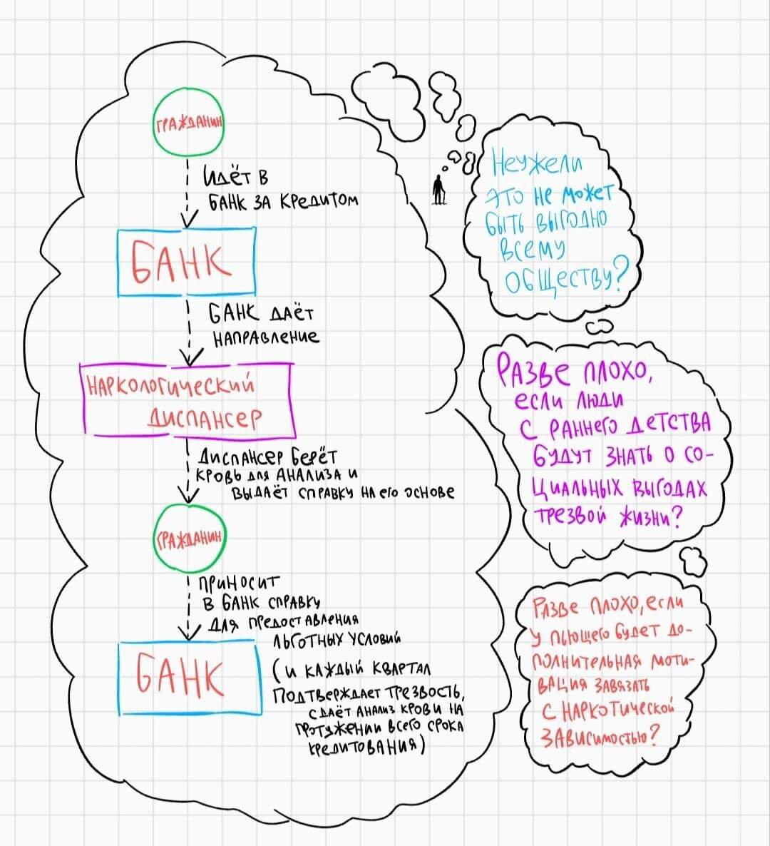 Бихевиоризм Скиннера. Позитивное подкрепление трезвого образа жизни. Неужели продукты творческой деятельности Профессора Скиннера невозможно использовать в российских реалиях? Почему всё так безысходно? Ведь очевидно, что можно позитивно стимулировать трезвый образ жизни, если подойти к решению задачи серьёзно, и с желанием осуществлять полезную для общества политику. Как минимум и вариант, можно организовать на государственном уровне программу, согласно которой трезвый человек мог получить самую низкую (7%) процентную ставку по потребительскому кредиту, если на протяжении всего срока кредитования будет своевременно предоставлять справки из (не коррумпированного) наркологического диспансера, в которой будет содержаться информация о количестве наркотических веществ в крови потребителя кредита. Если потребитель такой услуги добросовестно выполняет все условия, не пьёт и вовремя предоставляет справки (которые ему не просто так выдают, но и вместе с которыми его дополнительно информируют