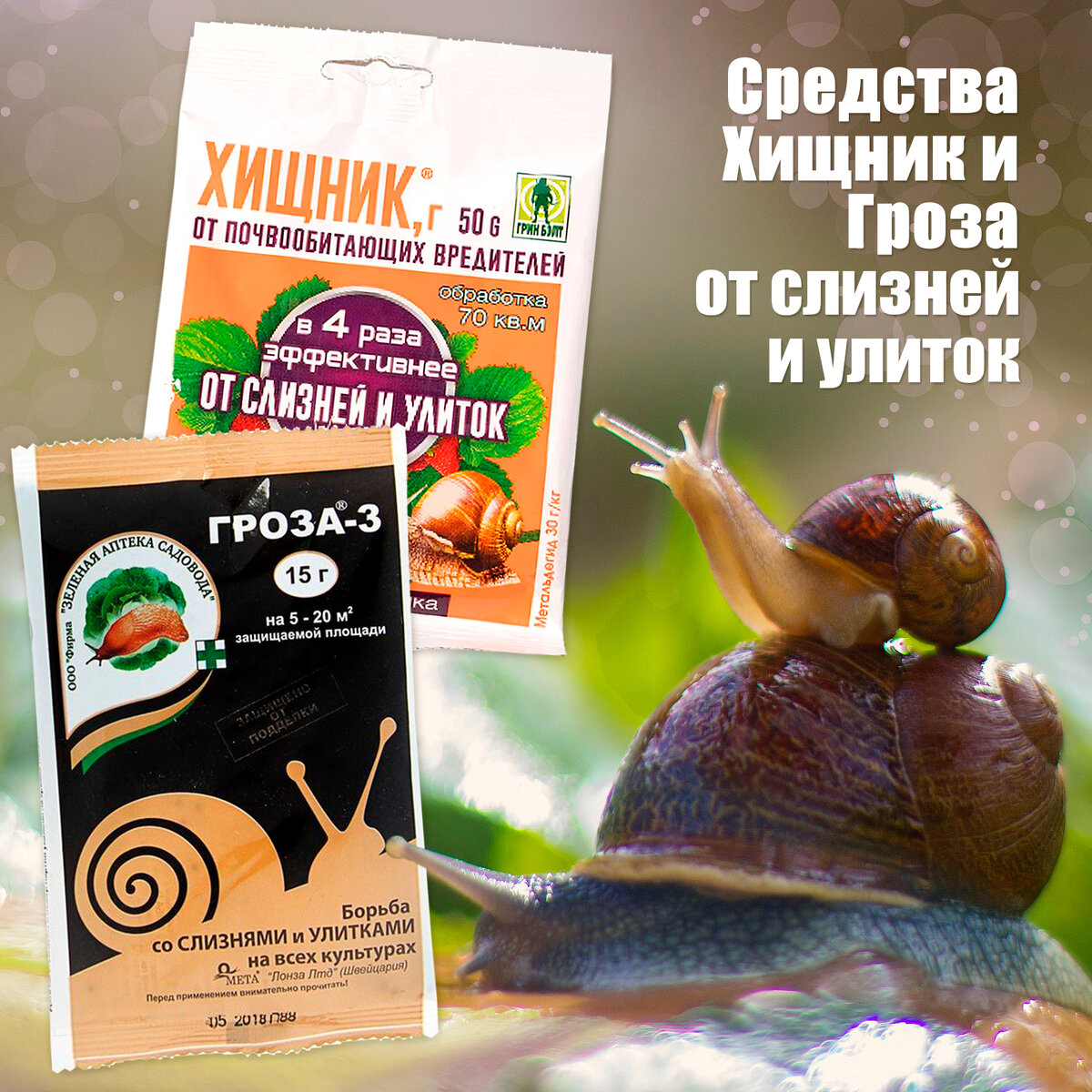Гроза – специальный препарат от моллюсков: слизней и улиток (моллюскоцид). Действующее вещество метальгецид. Кроме него в составе есть вещества, привлекающее слизней. Препарат контактно-кишечного действия: уничтожает вредителей при попадании внутрь – при проглатывании, и при попадании на тело моллюска. В грозе есть добавка, которая отпугивает птиц.