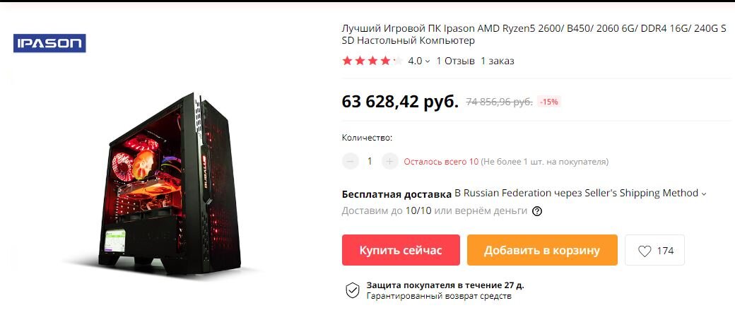 Очень часто на Aliexpress продаются собранные ПК , с хорошими характеристиками по довольно вкусной цене. Так ли это выгодно как преподносит нам продавец? Соберем все по отдельности. Материнская плата указана на чипсете B450 от производителя ASUS. Т.к. конкретная модель не указан будем выбирать что то среднее по цене и максимально похожее что на картинках. В магазине который рекламирует Галустян , всего 4 материнские платы АСУС на B450 чипсете по ценам: 4 , 5 , 7 и 13 тысяч рублей. Врятли там материнская плата за 13 тысяч , возьмем среднюю за 5