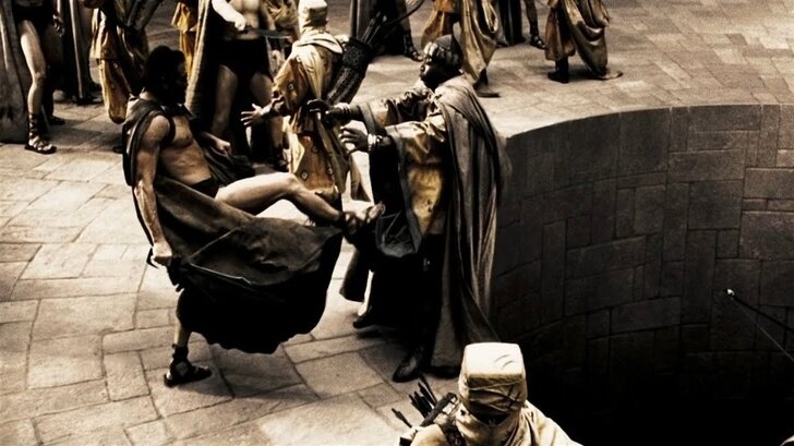 Знаменитый крик царя Леонида «Это Спарта!», который стал одним из самых популярных мемов в интернете, — импровизация актера Джерарда Батлера. Недавно он рассказал об этом в интервью журналу GQ. По задумке режиссера, герой Джерарда должен был тихо прошептать эту фразу и затем отшвырнуть персидского посланника в колодец. Однако актер попросил сделать еще один дубль. По его словам, никто из съемочной группы не ожидал такого громкого крика, поэтому его коллеги едва сдерживали смех. Однако режиссеру сцена понравилась, и он решил оставить в фильме именно этот вариант.