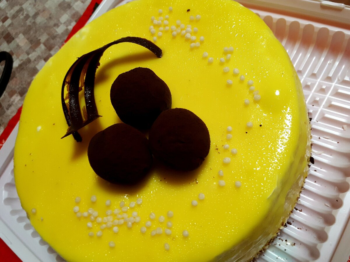 Прекрасные события в нашей жизни всегда сопровождаются чаепитием с вкусным тортиком! Вот и у меня настал День Рождения и решила я себя побаловать... Зашла в магнит... Выбор огромен... Торты от 150 (400гр) до 700 рублей. Много тортов собственного производства, покупала раньше, все нравилось, решила купить еще. Мой взгляд упал на такого вот красавца Яркий, визуально вызывающий аппетит, но одно но... Цена меня очень смутила... 190 рублей за 800гр. 0.20 к. за 1гр! Остальные торты собственнго производства были по 300 и выше... Решила сравнить составы.. Одно и тоже... только разные ароматизаторы.. Ну чем черт не шутит😁 Торт свежий, приготовлен утром. Момент истины... Разрезаем Оо, выглядит довольно неплохо... Торт мне понравился, самое необычное в нем вкус лимона, не сильный, не кислый, а приятный! Коржи не сухие, крем не приторный. Шоколад вкусный Не могу объяснить столь дешевую стоимость , но за такие деньги торт очень достойный 🍇💛