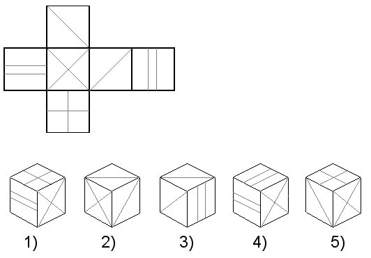 12...2 3...-1 18...4 9...? 6. Какой из кубиков можно собрать из данной развёртки? 7. Образуйте слово состоящее из 6 букв, использовав следующие буквы: ТАПНЕ Ответы: 1. 390625 2. в 3. б 4. Горн 5. 1 6. 3 7. патент