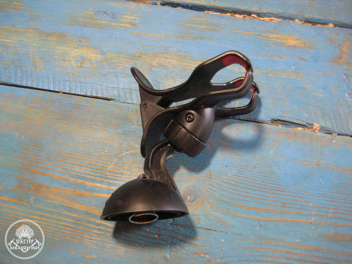 Я всегда хотел заняться съемкой в мастерской. Записывать весь процесс изготовления ложек или других деревянных поделок. Все свои фотографии делаю на старенький фотоаппарат, в котором мало памяти. А качество картинки не всегда передает творческую атмосферу. Про видео я вообще молчу. Жена однажды предложила снимать на другой фотоаппарат. Бюджетная зеркалка, и снимки делает хорошие. Вот только куда девать пыль и стружки от работы которые загрязняют объектив. Можно поставить на штатив подальше, а как же картинка с близким ракурсом... Ради эксперимента взял телефон и начал записывать видео. Понятное дело одной рукой хорошо не наснимаешь. Картинка дрожит и дергается. Ну и одной рукой многое не сделаешь. Попытался закрепить телефон просто зажав его на столе деревяшками. Что-то в этом есть, но угол обзора не тот. Вдруг вспомнил, как покупал простенький держатель для телефона в машину. После эксплуатации крепления сломалась плашка с присоской. Остался только хватательный элемент на вращающейся