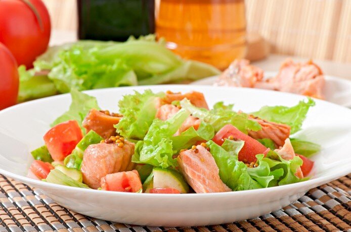 Лосось – рыба благородная. Салат с ней получится аппетитным и ароматным. Устоять перед ним будет невозможно.