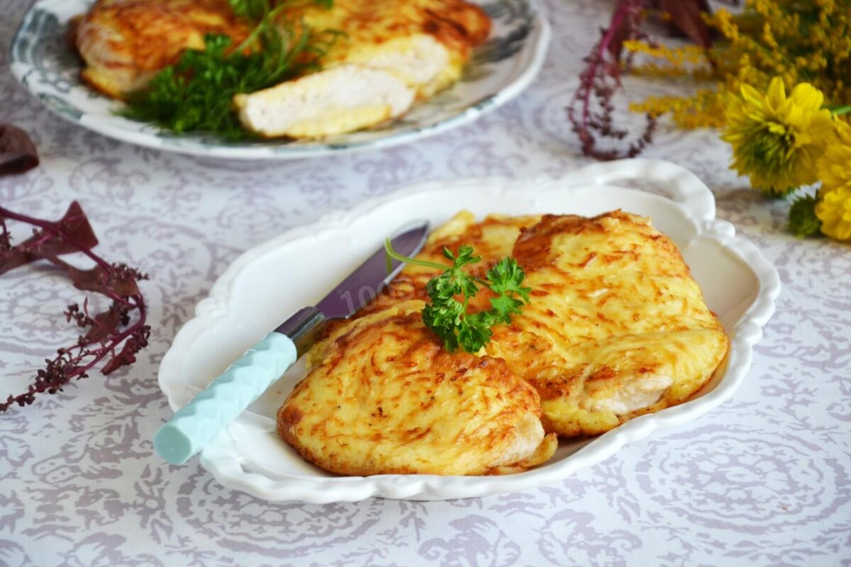 Без всяких сомнений, такое блюдо станет одним из самых любимых в вашей семье. Других вариантов просто нет. Куриное филе с сыром - сочное, питательное, ароматное блюдо. Благодаря сметане кляр получается более вязким и сыр лучше цепляется к поверхности мяса. Потому сырный слой на мясе более толстый. Очень вкусно! Рецепт подойдет и для повседневного меню, и для праздничного. Время приготовления 40 минут Калорийность 191 ккал/100 г Ингредиенты (4 порции) · филе курицы – 600 г; · мука – 2 ст. л; · сыр (твердый) – 100 г; · растительное масло – 2 ст. л; · сметана – 1 ст. л; · соль – по вкусу; · яйца – 2 шт; · свежемолотый перец – по вкусу Готовим кляр Мелко натираем сыр. Перекладываем в емкость. Добавляем сметану (20-25% жирности). Вбиваем яйца. Всыпаем муку. Перемешиваем. Консистенция смеси получается вязкой, довольно густой. Солим. Перчим. Подготавливаем мясо Моем и обсушиваем бумажными полотенцами филе. Разрезаем его вдоль волокон на 2 или 3 части. Отбиваем мясо кухонным молоточком с о