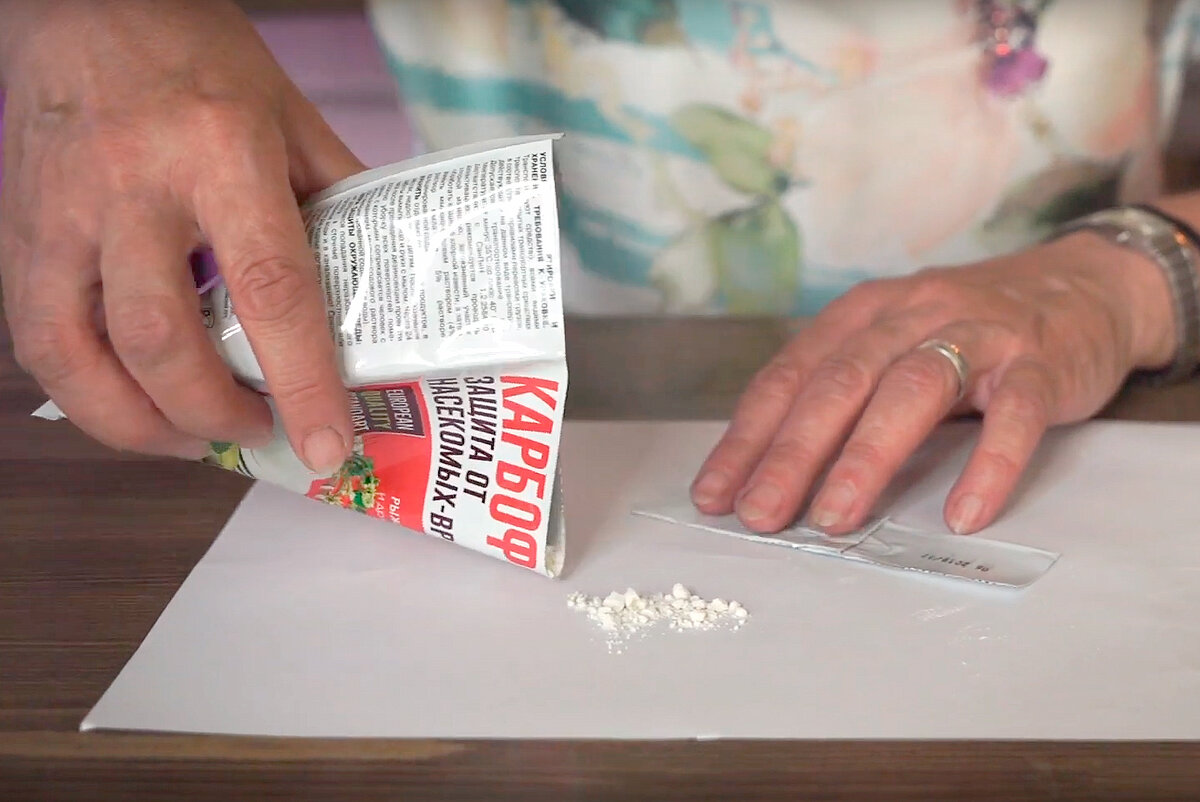 Карбофос – инсектицид сплошного действия – он убивает всех насекомых. Основное действующее вещество малатион. Препарат представляет собой кристаллический порошок с резким неприятным запахом, хорошо растворяется в воде. Это давно известный и популярный препарат. Его используют часто, но не всегда правильно. Чтобы избежать досадных ошибок разберем недостатки препарата: - у многих видов насекомых развилась стойкость к карбофосу. При использовании карбофоса, второе опрыскивание делайте другим препаратом, например, Инта-Вир, Искра, - он опасен для пчел и рыб. Обработки проводятся поздно вечером или рано утром, когда пчелы не летают. Нельзя применять карбофос вблизи водоемов, - препарат накапливается в организме птиц, питающихся в воде. Если на участке есть гусиный или утиный водоем карбофос не применять, - обладает неизбирательным действием: убивает как вредных, так и полезных насекомых, например, божью коровку, - не действует на яйца и зимующие стадии вредителей. Профилактическая обр