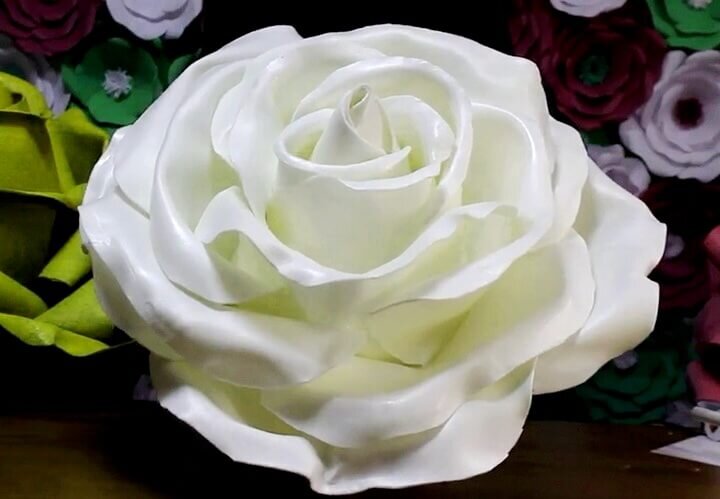 Посмотрите видео, в котором автор подробно рассказывает, как сделать цветок из изолона своими руками. Получилась огромная роза. Вы можете украсить ей садовый участок. Если вы как раз затеяли на даче ремонт, приберегите немного изолона, чтобы сделать этот роскошный цветок.