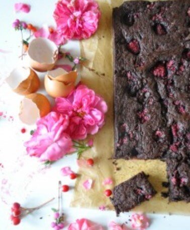 Смешайте какао и муку и постепенно замешайте к основной массе. Затем добавить треть малины, перемешать и выложить на противень. Поместите смесь в духовку и выпекать около 40 минут