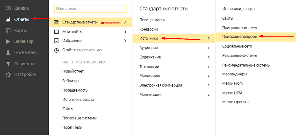 Ключевые слова в Яндекс.Метрике позволяют понять какие запросы с поиска или рекламы дают больше всего конверсий и по каким запросам пользователи находят сайт. Поисковые запросы в Яндекс.Метрике Для того, чтобы анализировать запросы из поисковой системы Яндекса достаточно посетить Яндекс.Метрику и открыть отчет «Стандартные отчеты»-«Источники»-«Поисковые запросы». При необходимости можно использовать фильтр для сегментации запросов, например, удаления брендового трафика. Важно! Поисковые запросы из Google в большинстве случаев не передаются, поэтому для этой цели следует использовать Google Analytics. Ключевые слова из Яндекс.Директа в Метрике Анализ ключевых запросов из Яндекс.Директа потребуется привязать счетчик в настройках рекламной кампании, после чего посетить отчет «Стандартные отчеты»-«Источники»-«Директ сводка». Группировка по поисковым запросам в Метрике Чтобы в любом отчете сгруппировать статистику по ключевым запросам можно использовать группировку. После чего выбрать нуж